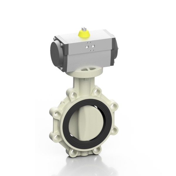 BIM PP-H Pneumatic PROFLOW® T Butterfly Valve Double Acting, AISI 420B Stem