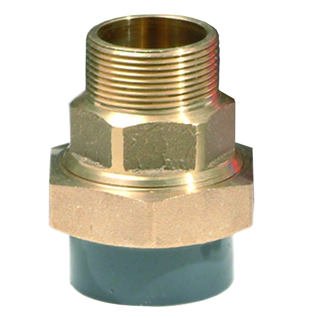BIM PVC-U/BRASS Adaptor Union, Solvent welded metric – male BSPP Threaded