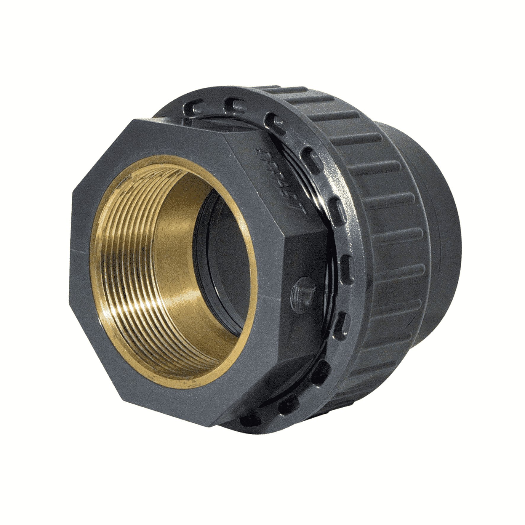 Dimensional PVC-U/BRASS Adaptor Union, Solvent Welded Metric – female BSPP Threaded