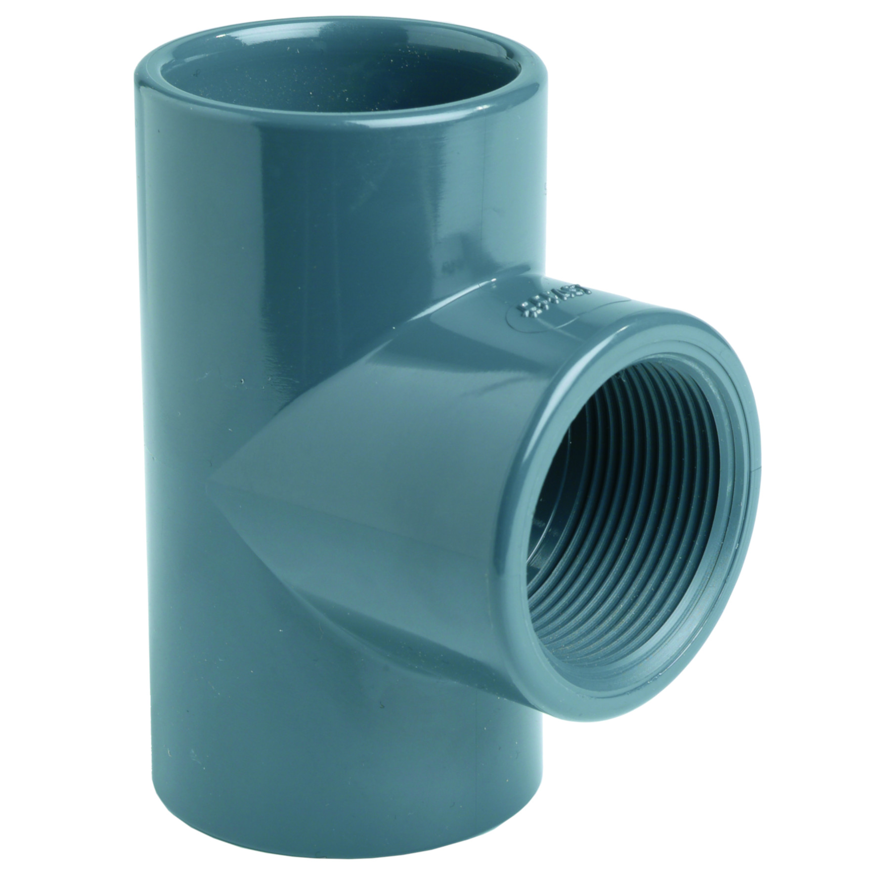 Dimensional PVC-U Tee 90°, Solvent Welded Metric -BSPP Threaded