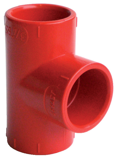 Dimensional RED ABS Tee 90°, Solvent Welded 3/4″